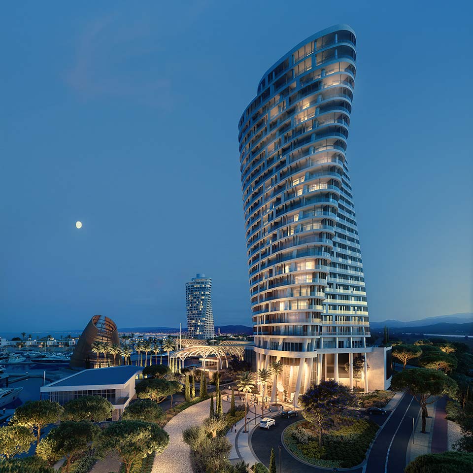 Ayia Napa Marina is the ultimate lifestyle resort specially designed by acclaimed SmithGroupJJR US-based architecture, engineering and planning firm to accommodate well deserved moments of relaxation and recreation. Featuring 220 luxury apartments for sale in two iconic, twisting towers, along with 35 luxury villas for sale overlooking the indigo sea, Ayia Napa Marina comes complete with the Ayia Napa Berth featuring 600 berths in wet and dry storage along with a wide array of boat storage facilities in Cyprus. Ayia Napa Marina is a boating and residential mecca as well as a dreamy recreational center with upscale leisure, entertainment and lifestyle choices, retail boutiques, waterfront dining options and exciting activities.
