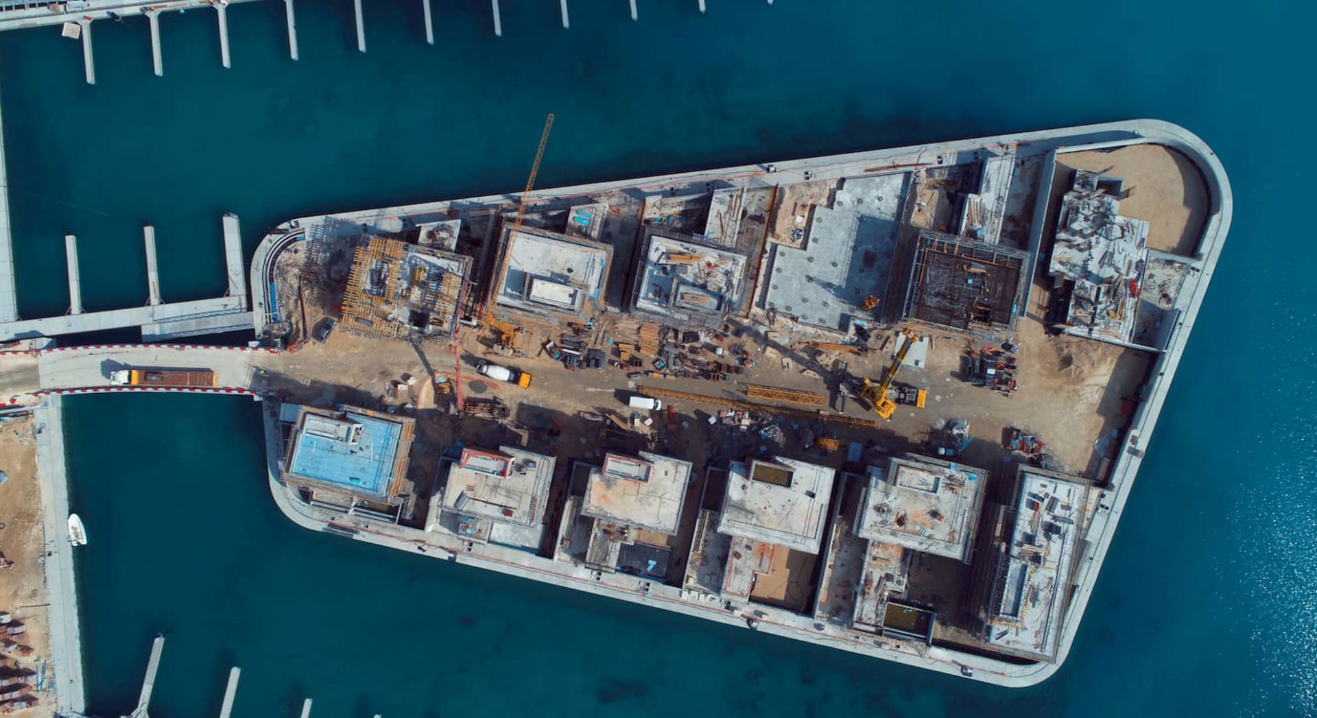 All marine works have successfully reached a completion this month, despite the challenges and the extreme weather conditions the project faced during the past three years. The marine works included an enormous amount of soil excavation, backfilling, dredging, construction of thousands of precast concrete armour units and blocks and their precise placement both underwater and above water level. The South Breakwater was the most significant part of the marine works and it forms the main defence mechanism for protecting both the Marina, the Residential and the Commercial Zones of the Development from the winds and waves. On Monday, 27.01.2020 another important milestone was achieved with the entrance of the first boat in the marina.