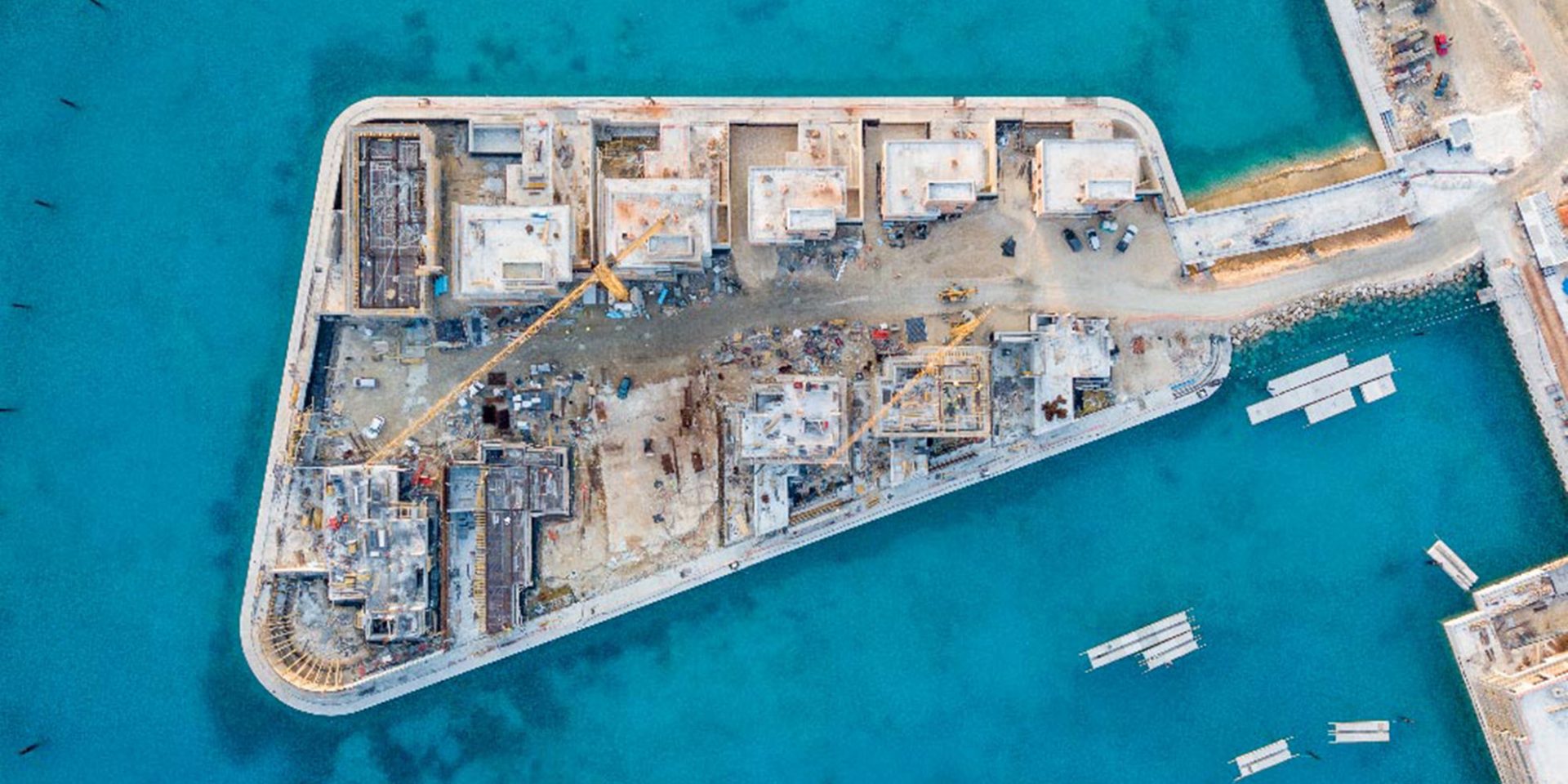 As for the buildings, finishes are currently being installed on the essential buildings, such as the governmental and harbour master ones, where plastering is being done on the commercial area buildings. Piling has been completed under the Yacht club and Event Centre platforms, and the East Tower’s foundation is proceeding as planned, with the third cast being completed.