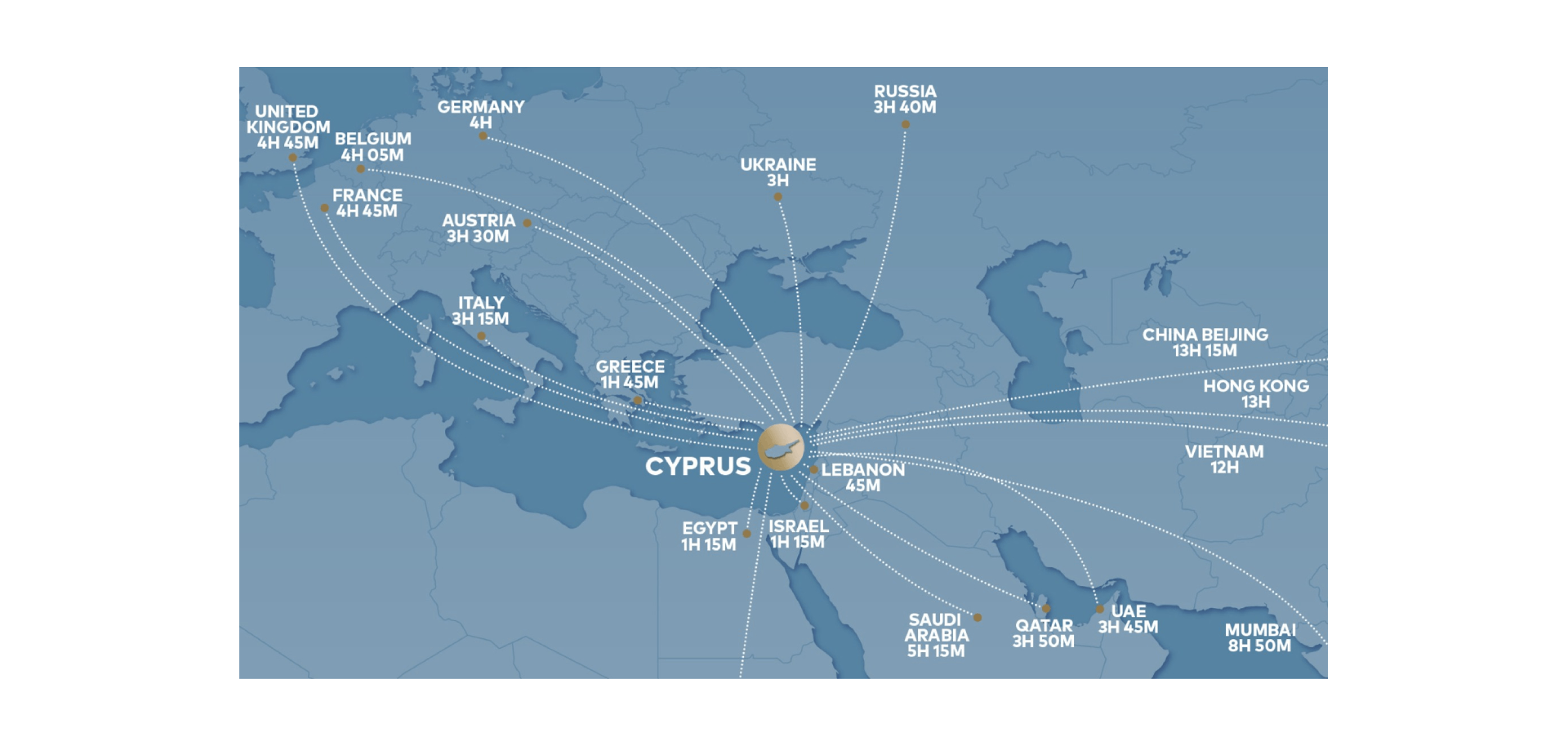 Strategically located in the eastern Mediterranean at the crossroads of three continents – Europe, Asia and Africa – Cyprus is a safe haven blessed by beautiful nature, all year-round sunshine, modern infrastructure, a high standard of living and a genuine culture of warmth and hospitality.