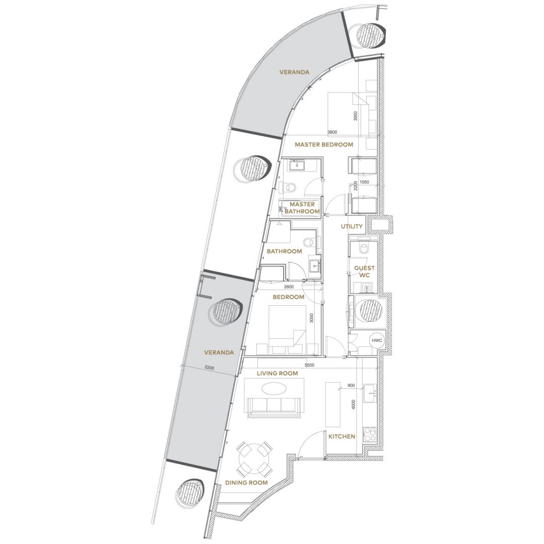 Home / West Tower / 2B1 2B1 Floors: 1-8 / Status: Available BEDROOMS2BATHROOMS2INTERNAL AREA86m2 / 925ft2COVERED VERANDAS30m2 / 323ft2TOTAL COVERED AREA116m2 / 1,248ft2GUEST WC1PARKING SPACE1 TECHNICAL SPECS FLOORPLANS BROCHURE 2 BEDROOM APARTMENT WEST TOWER 1 3 PREVIOUS NEXT DISCOVER THE VIEWS FACILITIES & SERVICES Residents are ensured peace of mind thanks to Facility Management Services and round the clock security.