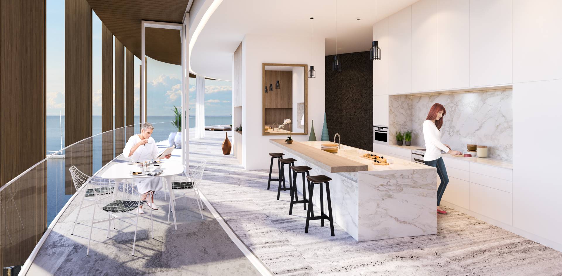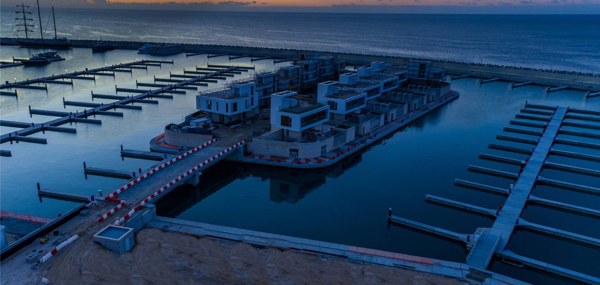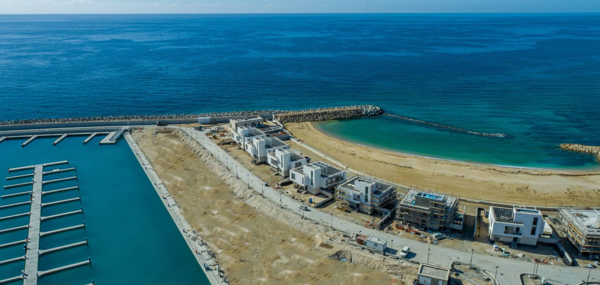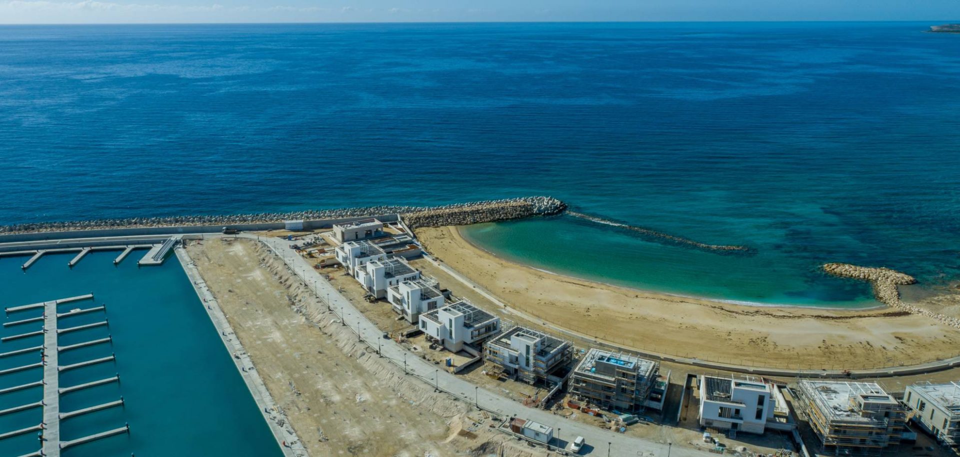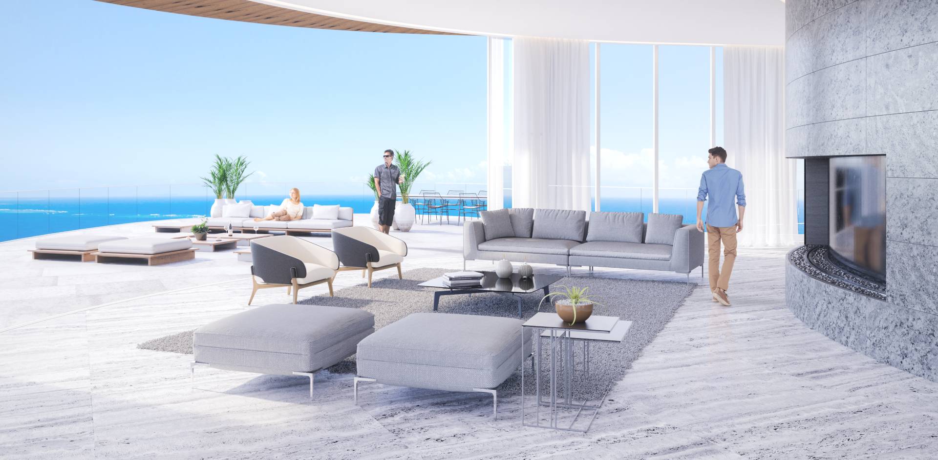 The lobby has an all-glass façade and sculptural ceiling, in a dramatic double height space with views out to an expansive amenity deck elevated over the marina. Taking full advantage of one of the most beautiful stretches of coastline in the Mediterranean, the 125 apartments are uniquely shaped to ensure that all living spaces, including bedrooms, are oriented toward the water and beaches; while the concept of modern, open plan designs maximize daylight and views. The apartments range from a mix of 1, 2, 6-bedroom residences to a full-floor 7-bedroom penthouse at the top floor, that features 360-degree panoramic views. Residents of the three radiused-end apartments enjoy 180-degree views. The private amenities deck includes landscaped gardens and lawn, cabanas, a protected child play area and day-care facilities and two separate pools, one of them specifically tailored to families.
