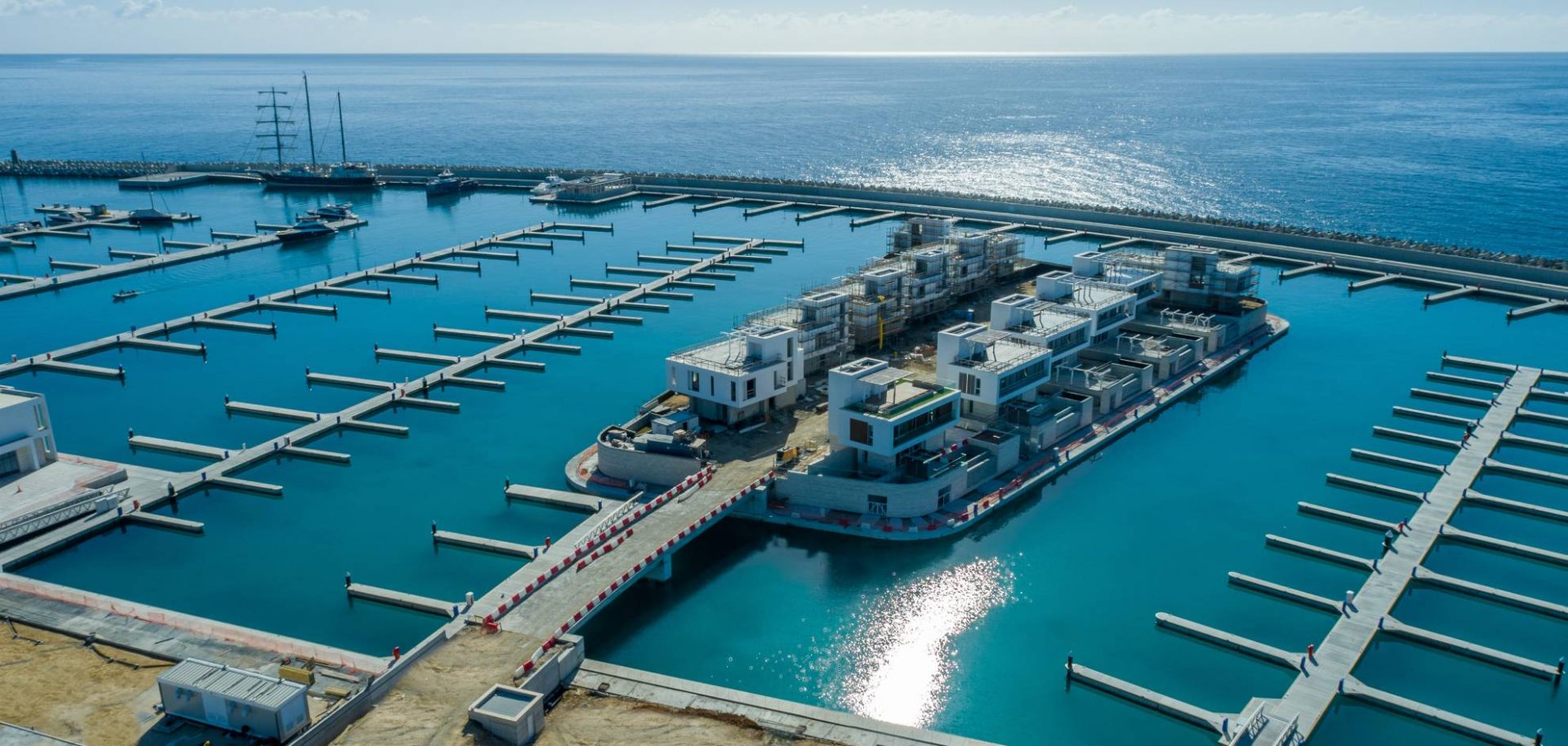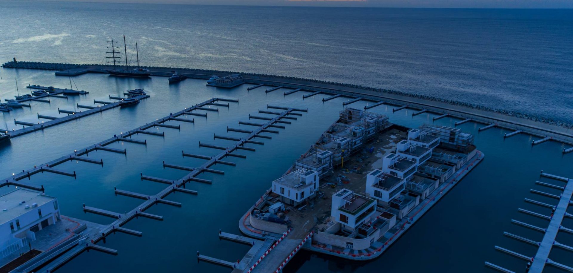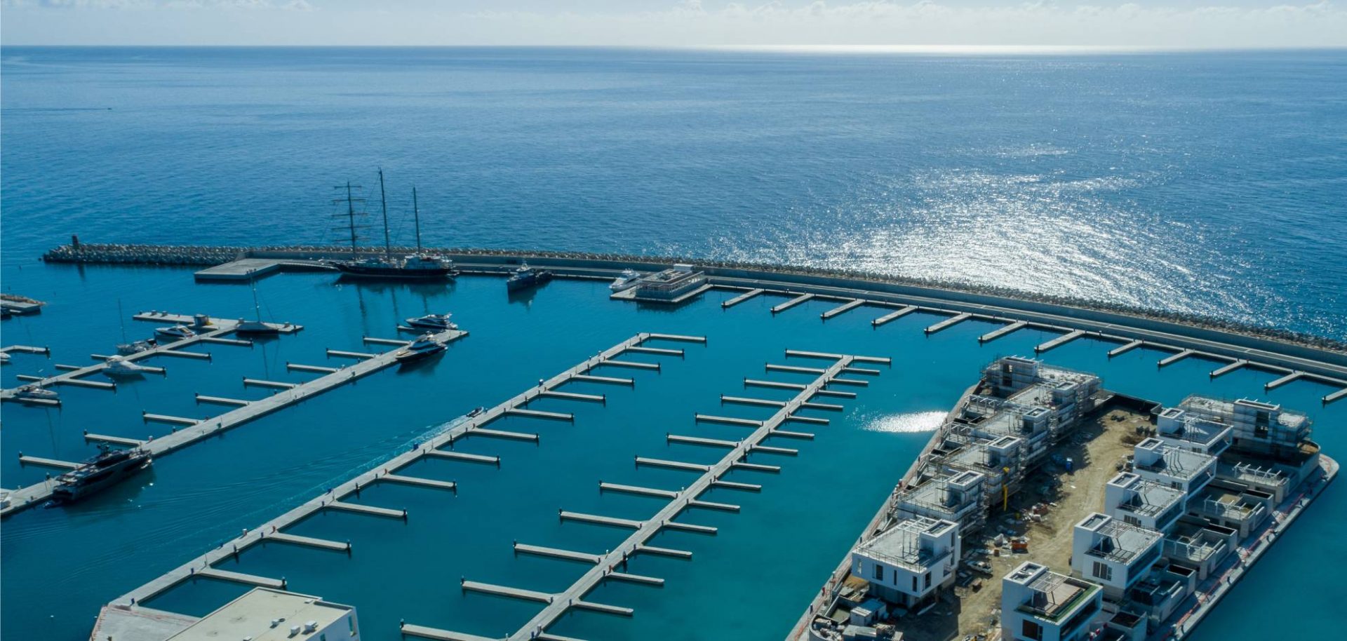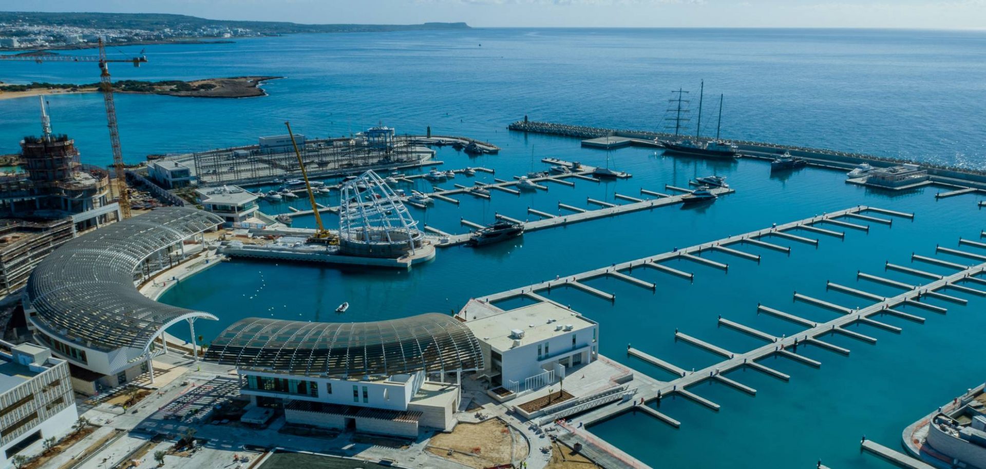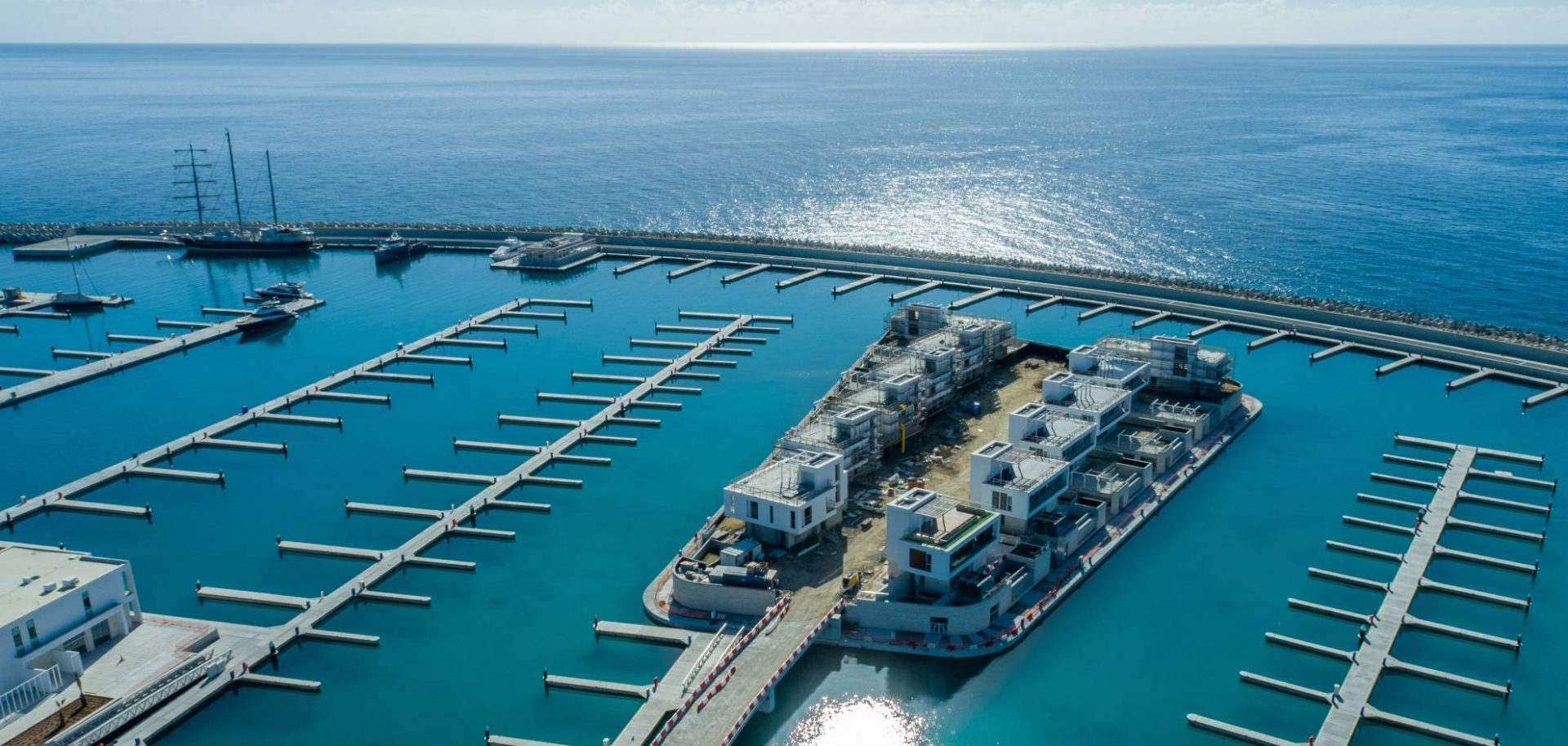 The lobby has an all-glass façade and sculptural ceiling, in a dramatic double height space with views out to an expansive amenity deck elevated over the marina. Taking full advantage of one of the most beautiful stretches of coastline in the Mediterranean, the 125 apartments are uniquely shaped to ensure that all living spaces, including bedrooms, are oriented toward the water and beaches; while the concept of modern, open plan designs maximize daylight and views. The apartments range from a mix of 1, 2, 6-bedroom residences to a full-floor 7-bedroom penthouse at the top floor, that features 360-degree panoramic views. Residents of the three radiused-end apartments enjoy 180-degree views. The private amenities deck includes landscaped gardens and lawn, cabanas, a protected child play area and day-care facilities and two separate pools, one of them specifically tailored to families.